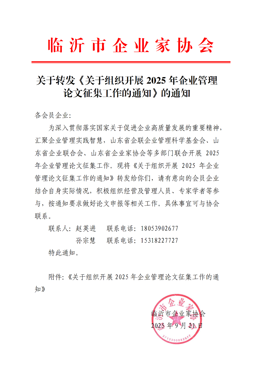 关于转发《关于组织开展2025年企业管理论文征集工作的通知》的通知