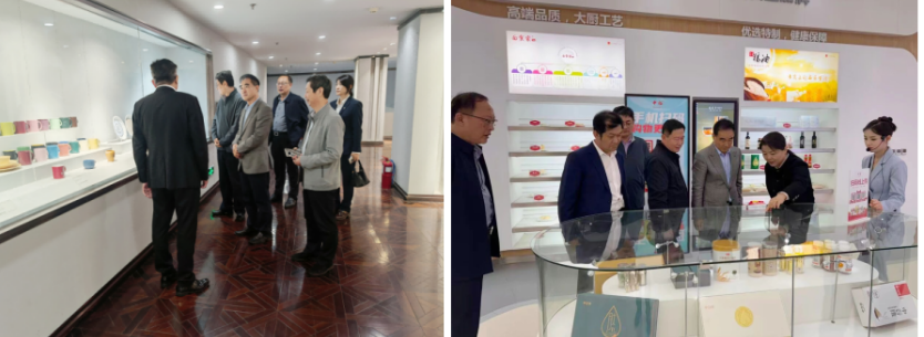 在淄博,淄博市企两会党委委员、副主席、秘书长邢华吉,副秘书长曹同伦,志愿者伊丕涛陪同座谈和考察。座谈中,邢华吉对受邀参加临沂企协换届大会表示感谢,对临沂市委、市政府高度重视和支持协会工作给予高度评价,并介绍了淄博企联在党建引领、政企桥梁搭建、“五会两院一中心”平台建设、品牌活动策划、服务企业、市场化运作、组织架构优化、自身建设等方面的工作开展和成功实践。会后,参观了淄博华光国瓷科技文化有限公司,听取了副总经理苏明磊对华光系列产品、科技创新、工艺制作、市场拓展等方面的介绍。